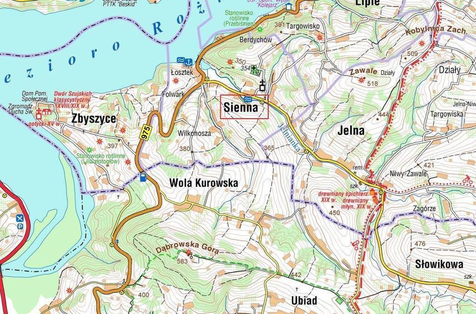 Położenie Siennej nad Jeziorem Rożnowskim i potokiem Jelnianka, powoduje że jest często odwiedzana przez wędkarzy i letników. Wyżej położone tereny dają możliwość podziwiania pięknych widoków jeziora i okolic.