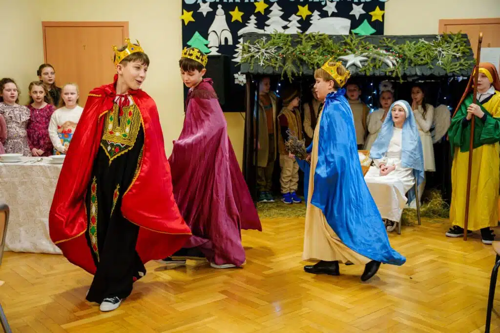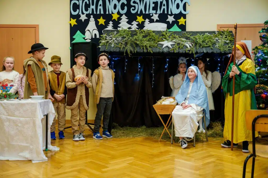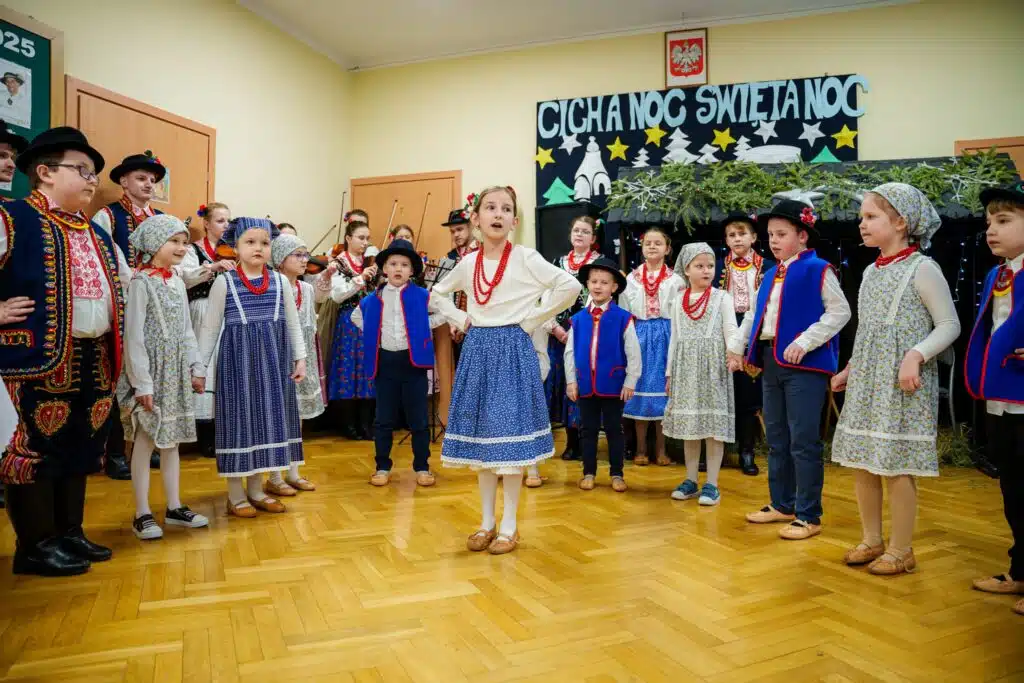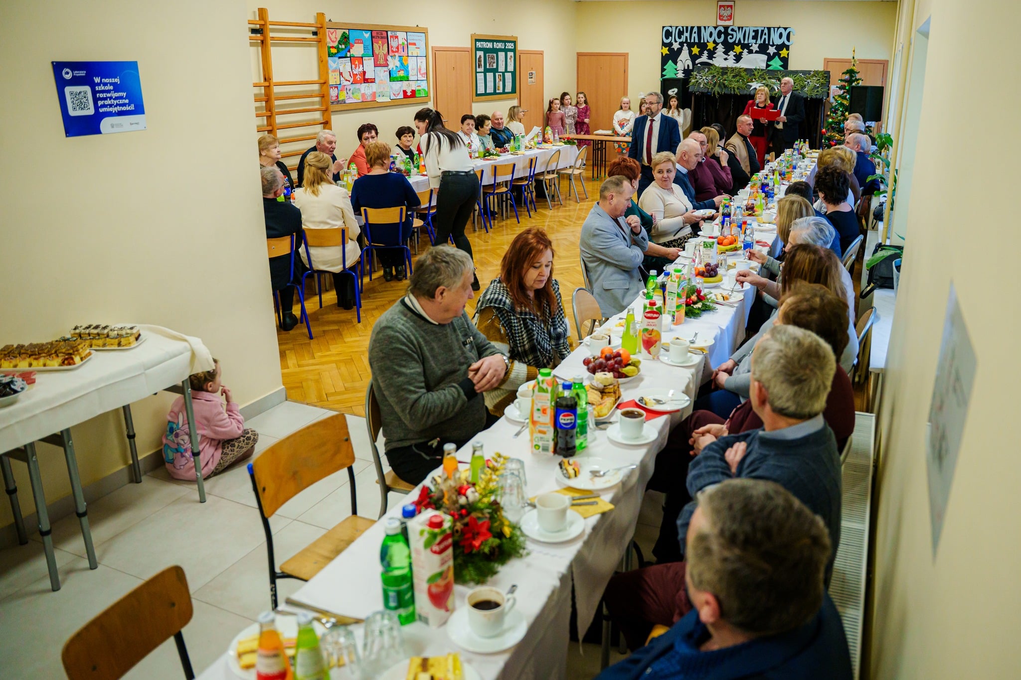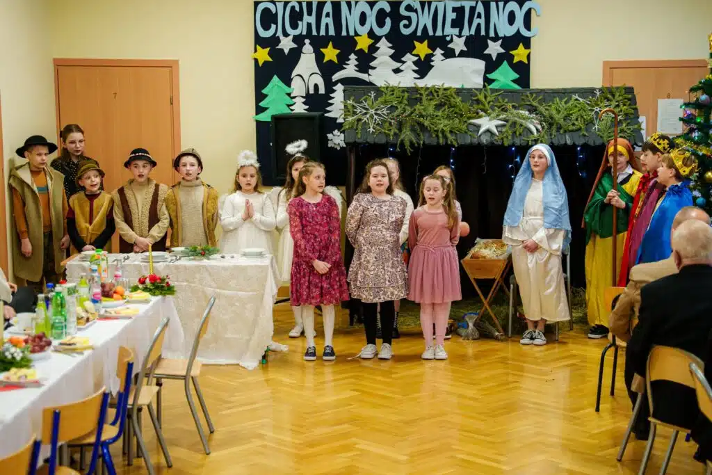Uroczystość uświetniły jasełka przygotowane przez dzieci i młodzież, które z dużym zaangażowaniem i sercem zaprezentowały swoje talenty artystyczne. Nie zabrakło również występu Zespołu Regionalnego „Siennioki”, który wprowadził uczestników w wyjątkowy, regionalny klimat i dodał wydarzeniu szczególnego charakteru.