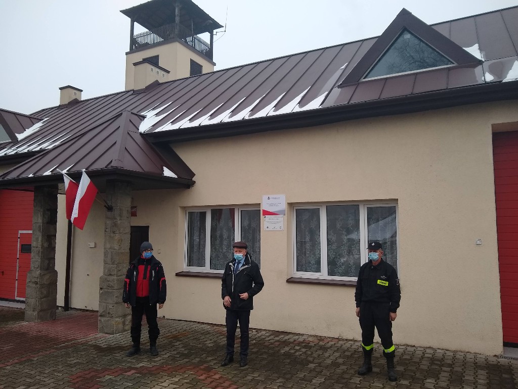 „Projekt współfinansowany ze środków Województwa Małopolskiego na realizację prac budowlano-remontowych w remizach strażackich w 2020 roku.”