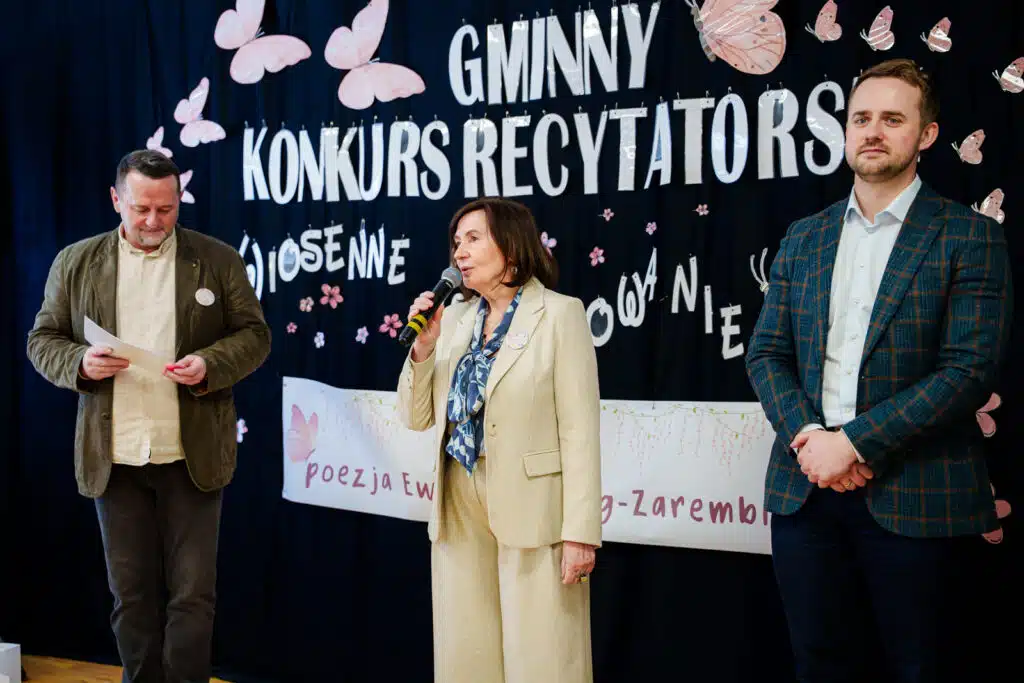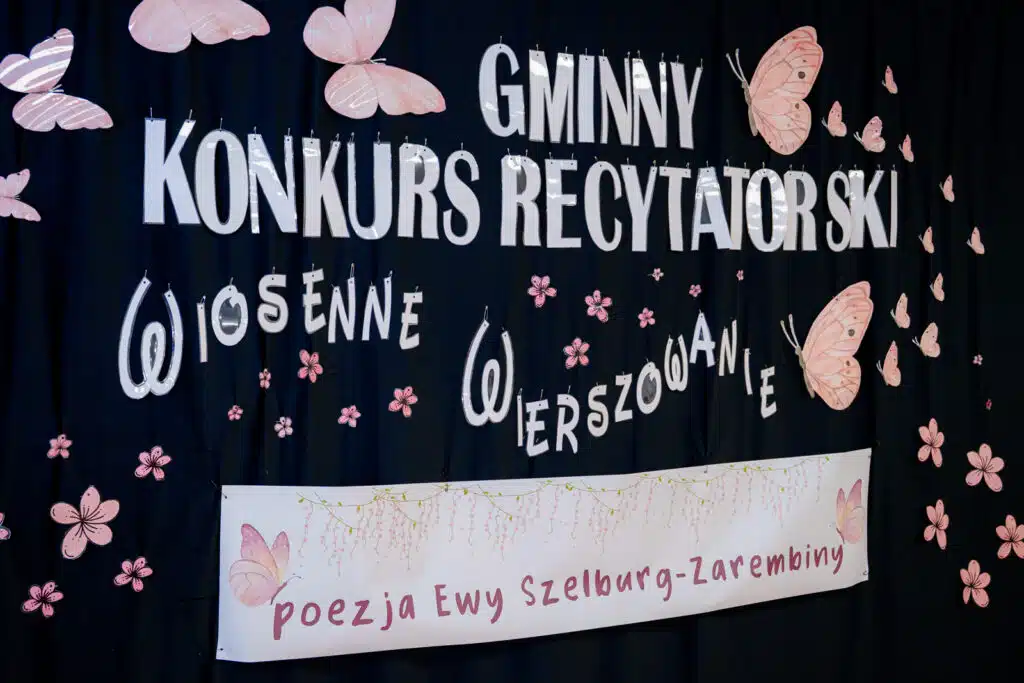 Gminny Konkurs Recytatorski miał za zadanie wyłonić trójkę młodych artystów, którzy będą reprezentować swoje szkoły podczas powiatowego etapu. Aby poczuć poetyckiego ducha członkowie jury na dobry początek przeczytali kilka wierszy bohaterki wydarzenia. Wybrzmiały zatem utwory: Ptaszki, Jak szło słonko spać” i „Nad strugą”.