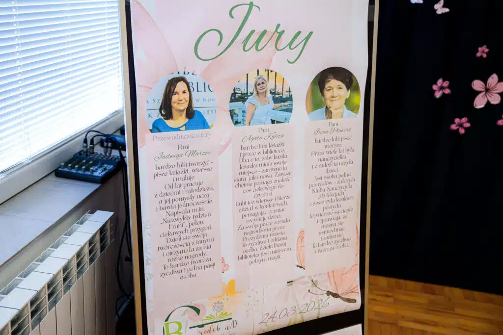 Jury w składzie: Jadwiga Marzec (pedagog, poetka i autorka książek dla dzieci), Agata Kaleta (bibliotekarka) i Irena Pławiak (poetka i wieloletnia nauczycielka) miało nie lada wyzwanie. Każdy zaprezentował się jak najlepiej, ale ostatecznie na podium znaleźli się: