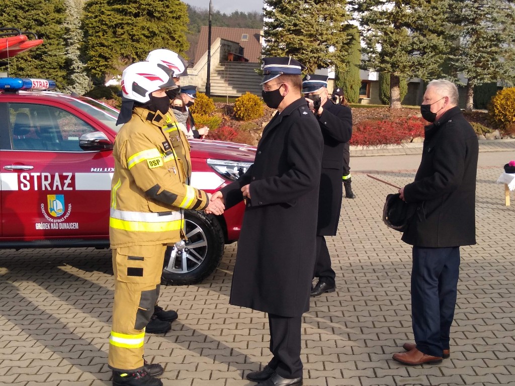 W sobotę 9 stycznia 2021 roku odbyła się uroczystość przekazania oraz poświęcenia lekkiego samochodu ratowniczo-gaśniczego jednostce OSP Gródek nad Dunajcem. Przekazania samochodu marki Toyota Hilux dokonali; Wiceminister Środowiska a zarazem Prezes Zarządu Oddziału Wojewódzkiego ZOSP RP dh Edward Siarka, Prezes Zarządu Oddziału Powiatowego ZOSP RP dh Paweł Motyka oraz Wójt Gminy Gródek nad Dunajcem Józef Tobiasz, natomiast poświęcenia nowo zakupionego wozu strażackiego dokonał ks. prałat Władysław Mucha.