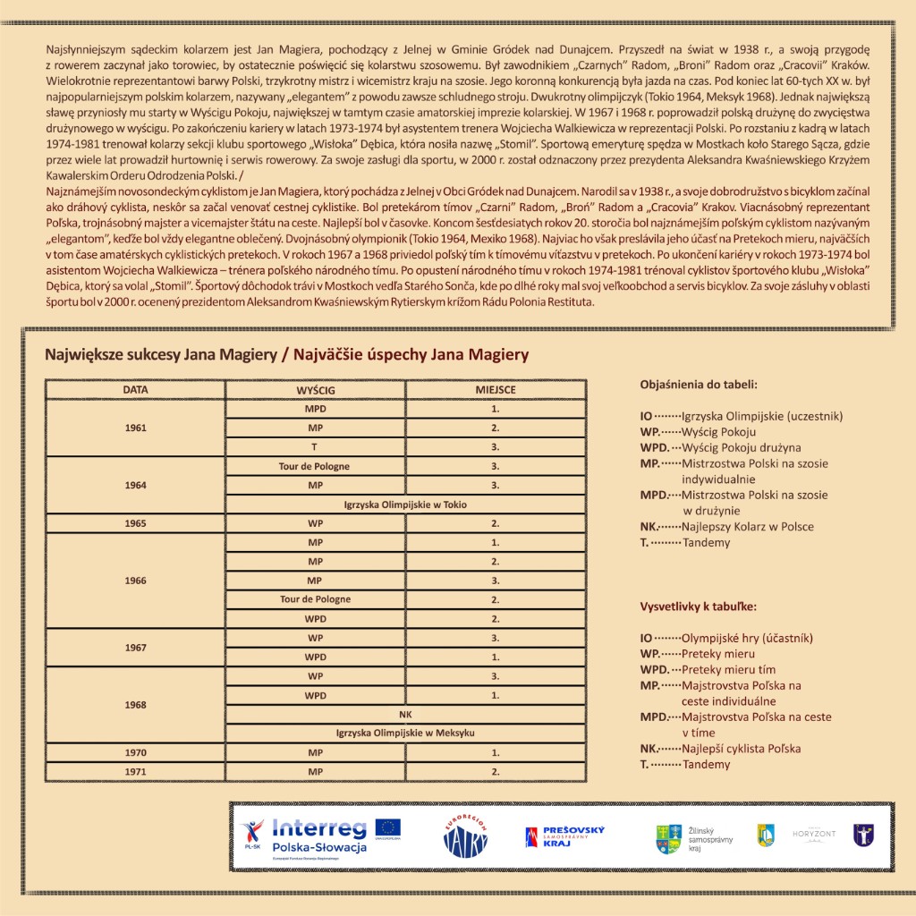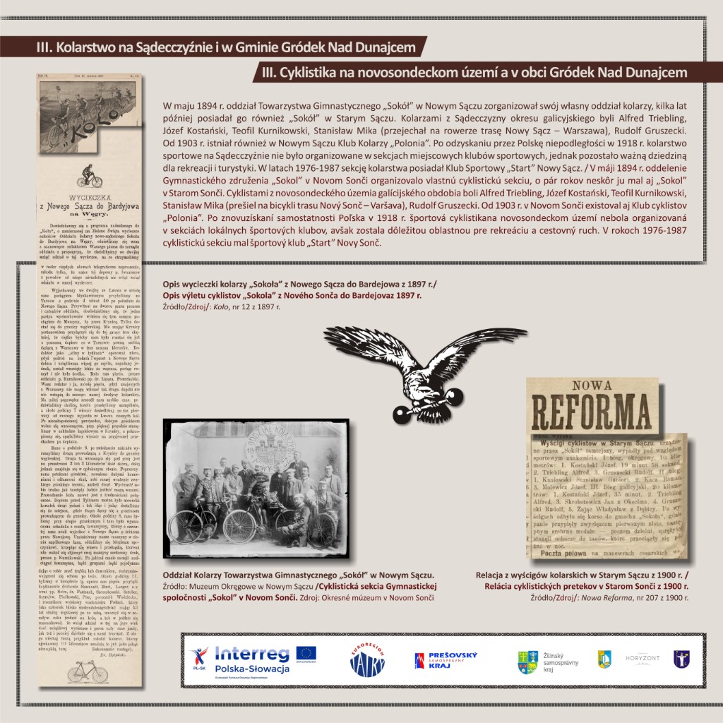 Wystawa pn. „Od cyklisty do kolarza – historia kolarstwa na Sądecczyźnie”, zrealizowana w ramach projektu pn. „Rozwój i promocja potencjału turystycznego w Gminie Gródek nad Dunajcem i Obec Lendak” współfinansowanego ze środków EFRR w ramach Programu Współpracy Transgranicznej INTERREG V- A Polska – Słowacja 2014-2020