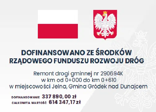 Nazwa zadania: Remont drogi gminnej nr 290694K w km od 0+000 do km 0+610 w miejscowości Jelna, Gmina Gródek nad Dunajcem