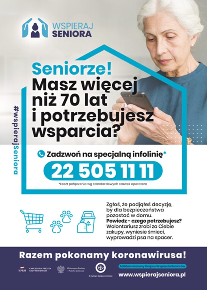 Jeśli w Twoim otoczeniu znajdują się osoby starsze  wymagająca pomocy możesz również to zgłosić przez infolinie.